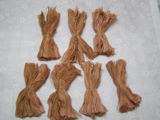 - 染めたしつけ糸を6cmずつにカットして中心を束ねておきます。(7個)