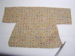 ワンピースを7mmの縫い代をつけて縫います。この時裾の縫い代部分は左写真のように斜めに縫います。表に返す時その裾の縫い代部分を斜めに切っておきます。脇の下と衿あき部分にも切り込みを入れておきます。