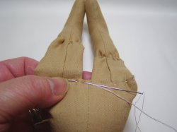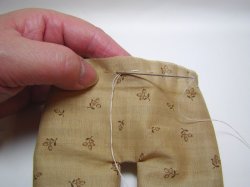 1cmくらいのところをぐし縫いしてボディにはかせ縫い絞ります。この時少しきつめに糸を絞るとパンツが脱げることはありません。