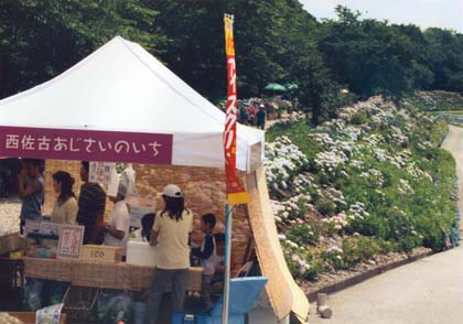 あじさいの見ごろには上井川沿いに1km以上の街道となります。また、土・日曜の出店(6月のみ)には地場産の新鮮なジャガイモ、キュウリ、トウモロコシが並び、これを楽しみに来る人も多いようです。来年からは、あじさい等の苗木販売の計画もあり楽しみが増えることでしょう。あじさい以外にも春には桜や芝桜、夏には蛍やヒメイワダレソウの花が楽しめます。